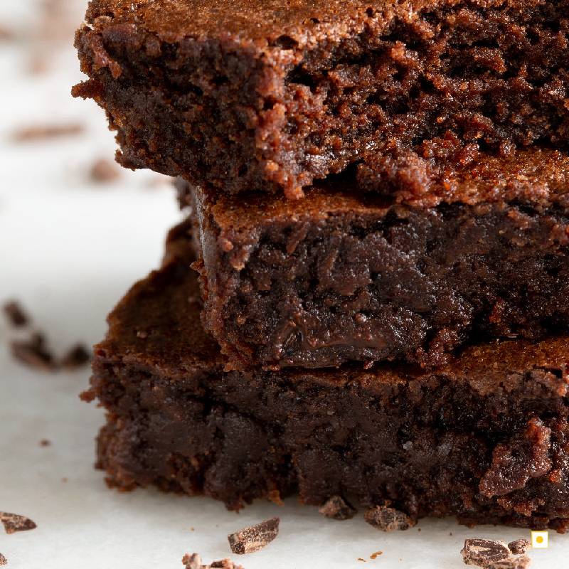 Our classic Choco Chip Brownie is a gooey chocolate brownie loaded with dark chocolate chips. It is a dense fudgy brownie made with pure couverture chocolate, that will simply melt in your mouth.