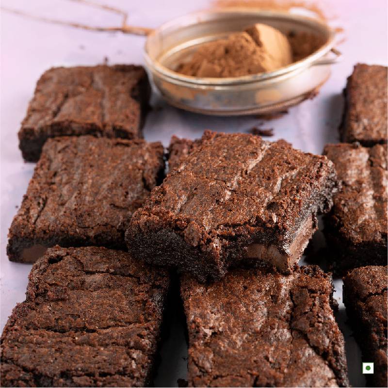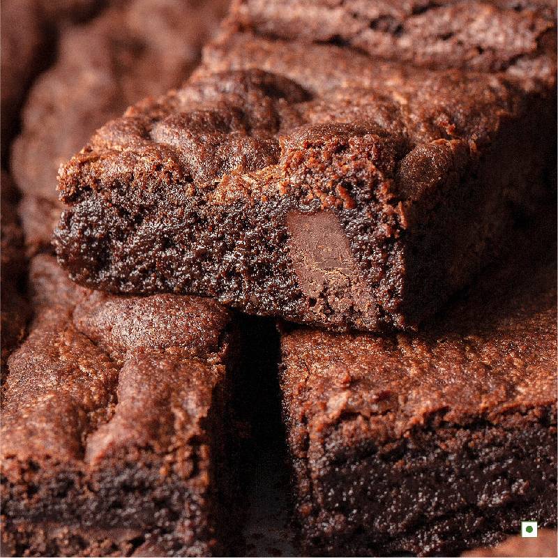 Our Outrageous Chocolate Brownie is made with pure chocolate, flax seeds and ground almonds. It has a rich and dense texture. Made without eggs.