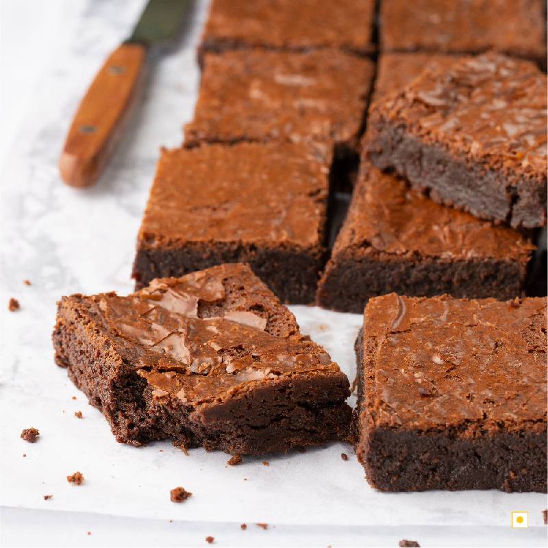 As the name suggests, our Overload Brownie is loaded with real dark chocolate. This dense fudgy brownie with the perfect crackling top is the ultimate chocolaty treat.