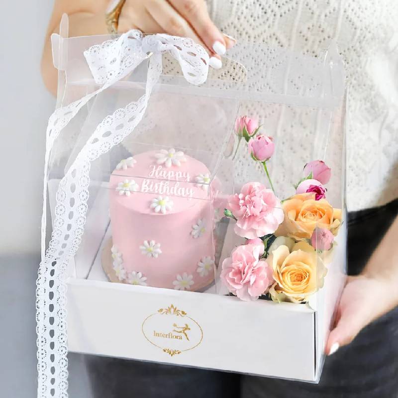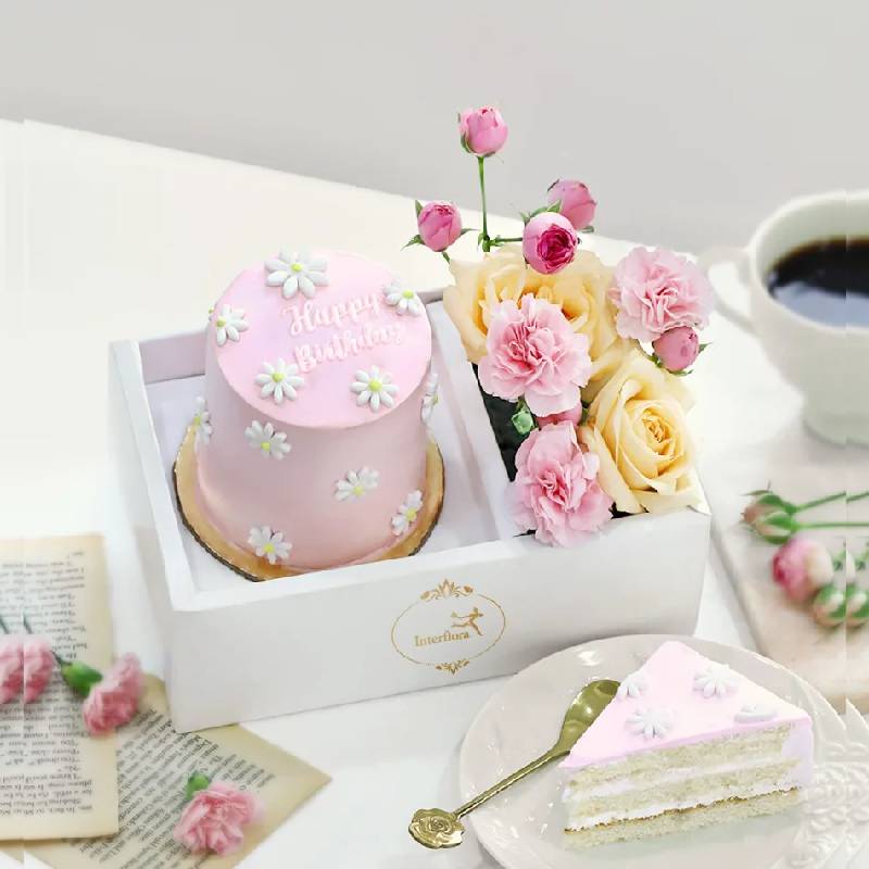 Your forever inspiration, they deserve to be celebrated. Tell them how truly irreplaceable they are with a gesture of gratitude - A mini happy birthday chocolate cake encased in a mini cake box with peach roses, pink spray carnations and pink spray roses