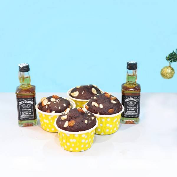 Entice your Loved one on the festival of Christmas with Merrier Muffins and Minature of Jack Daniels. So, Wondering what to gift on this Christmas? Then undoubtedly you are on the right platform MyFlowerTree. We decorate our platter with a wide range of gifts that you can send to India for your friends and family right on Time. Product Contains: - 2 Jack Daniel Miniature Bottle of Wine - 4 Chocolate Muffins