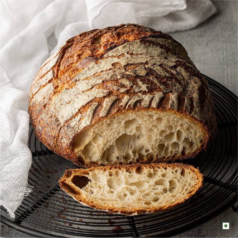 Our Sourdough Loaf is a naturally fermented loaf without the use of any commercial yeast. This mildly sour loaf has a crisp crust and a bubbly chewy inside. We make our sourdough over 48 hours and use an entirely natural starter along with whole wheat, making it a healthy bread perfect for digestion and gut health.
